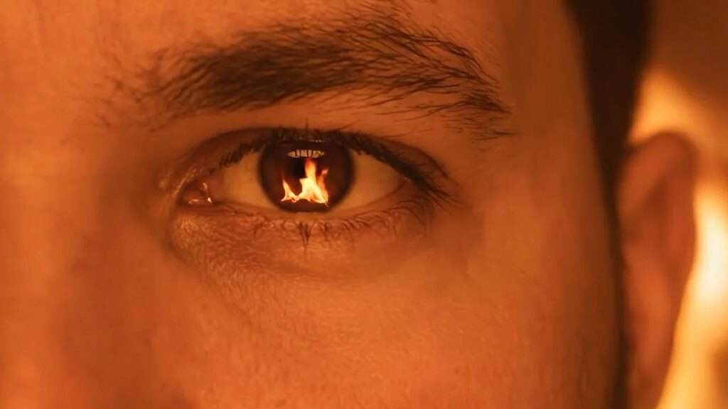 O videoclipe de “A Chama” eleva a experiência a outro nível, utilizando inteligência artificial e efeitos visuais realistas de fogo para criar um ambiente visualmente impactante. Nas cenas, Duacre aparece em uma casa tomada pelas chamas, em busca de um pingente em forma de coração de fogo, um símbolo do amor que simultaneamente ilumina e consome. A produção intercala momentos reais e simbólicos, com o fogo assumindo o papel principal como uma linguagem emocional e estética, representando a paixão e a força criativa do artista. A produção visual reforça a proposta do artista de unir arte, sensibilidade e tecnologia.